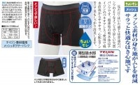 【素材】〈身生地〉無地部分:ポリエステル95%、ポリウレタン5%(メッシュ部分)ポリエステル95%、ポリウレタン5%〈ゴム部〉ナイロン55%、ポリエステル35%、ポリウレタン10%〈吸水部〉表生地:ポリエステル100%、内層部:レーヨン、ポリエステル、合成繊維(ベルオアシス(R))、ポリウレタンシート使用