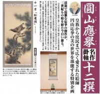 日本美術史上に燦然と輝く、円山応挙。徹底した写実主義を貫き、類稀なる写生技法と天与の才が数々の秀作を生み出し、後に円山派の始祖となった日本美術界の巨星。江戸中期の画人に並ぶものなく天下の名人と敬われ、画品高雅にして筆格端正と謳われたその名画は、今も日本人の心の琴線にふれる優美さを放ち続けています。応挙の絵画世界をより幅広く味わっていただきますよう、花鳥・山水・人物等、多種多彩な画題を毎月掛け替えられるよう精選し、掛け軸に複製しました。どうぞ応挙の世界をご堪能ください。