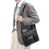 ◆サイズ:約幅28×高さ26×厚さ8cm、ショルダーベルト長さ/約67〜134cm、幅/約3.5cm◆重量:約700g◆色:茶、黒◆素材:本体/本牛革(クロコ型押し)、ベルト/ナイロン、金具/合金◆仕様:正面/ファスナーポケット×2、かぶせ(マグネット式)、背面/ファスナーポケット、本体内部/大型ジッパー、メインポケット、携帯電話ポケット、コインケース