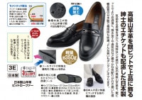 ◆サイズ:24.0cm〜27.0cm(0.5cm刻み)◆足囲:3E◆重量:約350g(片足26.0cmの場合)◆色:黒◆素材:キッド革(山羊革)、中底/吸湿・放湿性合成繊維、靴底/TPRラバー◆日本製