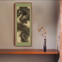 北斎といえば、代表作に『富嶽三十六景』などがあり、今や世界的にも著名な画家。本作はその大芸術家が、世を去る90歳の時に描いた最晩年の作です。家族や弟子に見守られ最後につぶやいたのは、「あと5年長生きできれば、真の画工になれた」とのこと。大きな手で虚空をつかまんとする巨大龍の姿と北斎がだぶります。ぜひ、大絵師入魂の絵を飾り、日々ご鑑賞ください。