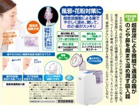 ●付属品:吸入マスク、マスクカバー、計量スプーン、吸入ノズルセット、口ノズル、鼻ノズル、霧化カバー、ヒーターガード、吸入液カップ、本体保護カバー、取扱説明書、クイックガイド※水道水・生理食塩水専用※口・鼻両用