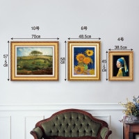 絵の展示に不可欠なものが額縁で、名画を引き立てる重要なアイテムです。世界中の人々に愛され続ける西洋絵画に相応しい、重厚感のある豪華金色額縁に入れてお届けします。